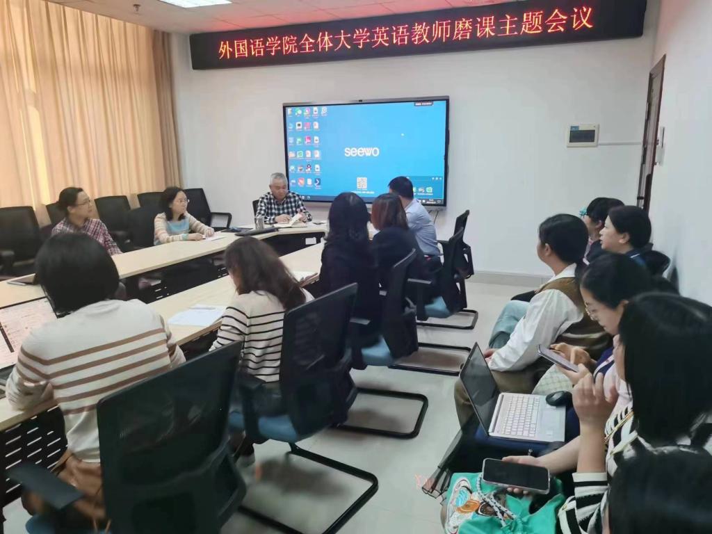 廖光蓉参加全体大学英语教师磨课活动10月31日下午,大学英语第一和第二教研室开展了磨课活动。院长廖光蓉,副院长刘江,大英一教研室主任张艳红,大英二教研室副主任彭瑛、柏茜茜,中医学翻译与传播教研室主任丁颖、副主任黄杨,以及三个教研室的全体教师参加了活动。会议由刘江主持。活动现场中医学翻译与传播教研室副主任黄杨就10月19日下午廖光蓉参与该教研室的集体磨课活动成效进行了全面而细致的分享。黄杨重点回顾了廖光蓉就如何突出以学生为中心、如何贯彻...