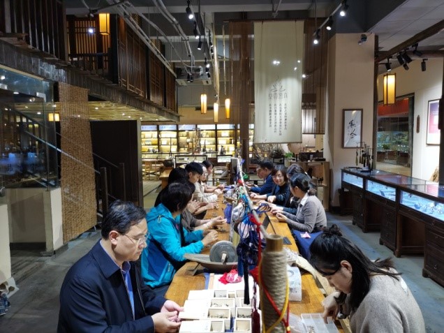 在非遗馆,大家参观了古琴研习室、长沙铜官窑展、湘绣展,并来到“真馨香堂”亲手制作了香牌,品尝了素食宴,充分体验到了传统文化之美、湖湘文化之美,进一步增强了民族文化自信。