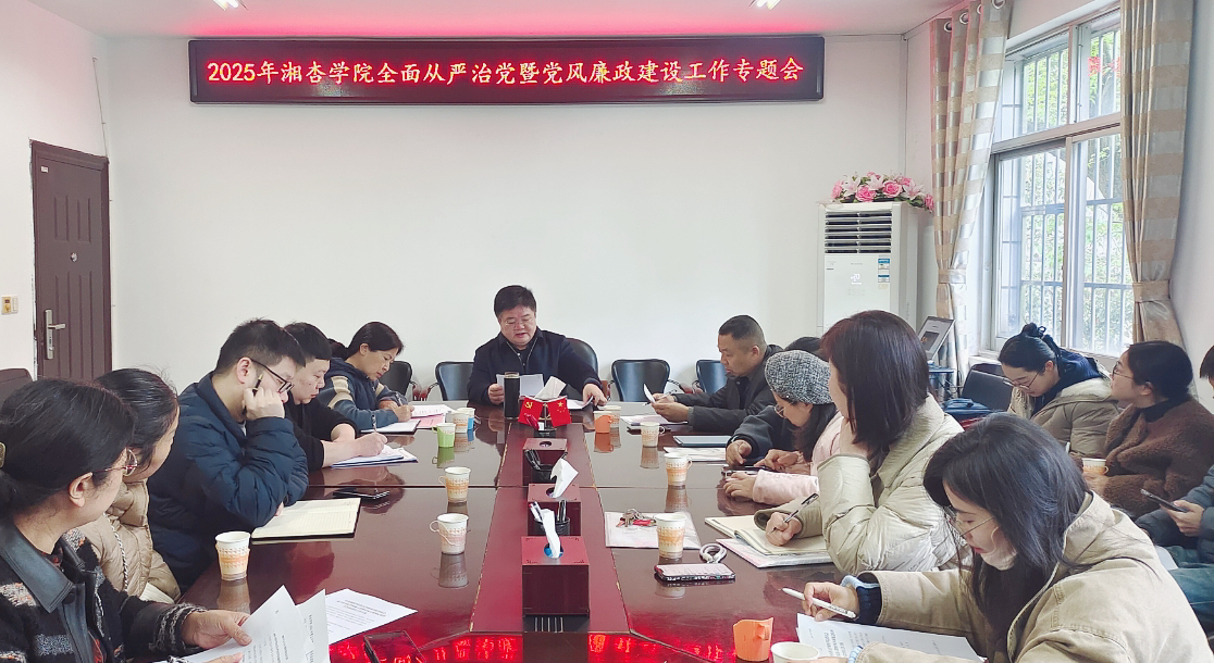 2025年3月28日上午,湘杏学院在三楼会议室召开全面从严治党暨党风廉政建设工作专题会,深入学习贯彻党的二十大和二十届二中、三中全会精神,全面落实新时代党的建设总要求,系统部署年度党风廉政建设工作。学院全体教职工参加会议,学院党委书记王文波主持会议并讲话。