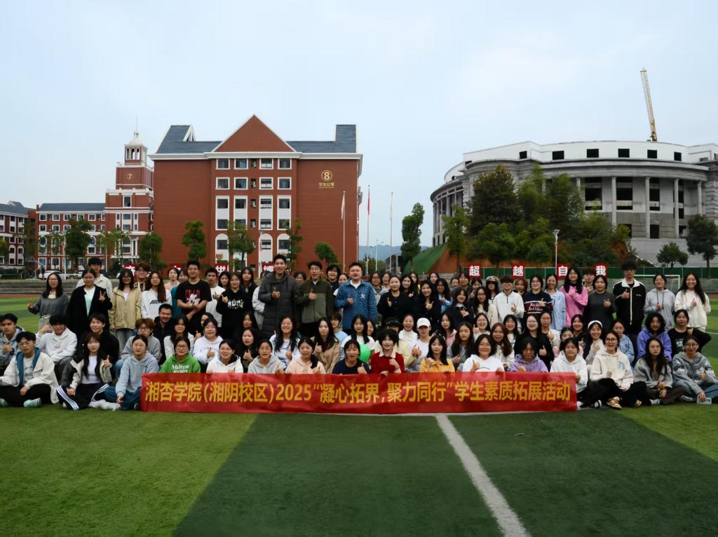 湘杏学院(湘阴校区)第四届团委、学生会全体成员于田径场成功开展“凝心拓界,聚力同行”主题素质拓展活动。团委老师代表及2025级学生辅导员受邀参与,与全体成员共同完成多项协作挑战,并在互动中寄语青年学子,共促成长发展。