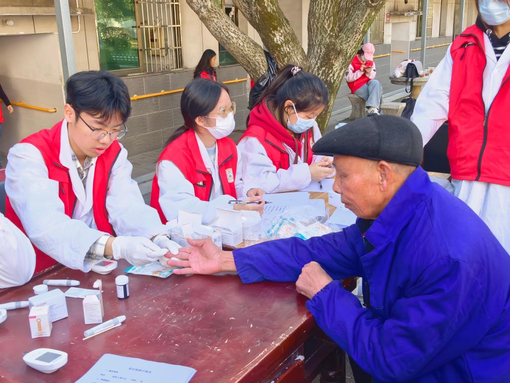 义诊组首先为老人开展健康监测:测量血压、血糖并记录数据,建立简易健康档案;同时结合老人日常作息,讲解高血压、糖尿病等常见慢性病的保健知识,帮老人掌握基础健康管理技能。
