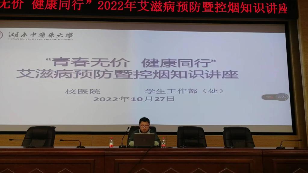 10月27日下午,共青团湖南省委员会、共青团长沙市委员会、省卫生健康委健康教育宣传中心、长沙市青彩健康志愿服务中心主任向愈韩来学校开展了面向2022级新生以“青春无价,健康同行”为主题的预防艾滋病、结核病、禁止吸毒、防止性侵害及控制吸烟等健康教育专题讲座。