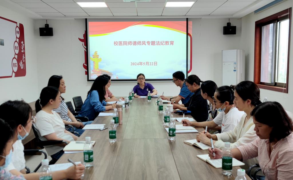 师德师风是教师职业的灵魂,是教师履行职责、教书育人的重要保障。5月22日上午,校医院在三楼会议室开展师德师风专题法纪教育,会议由张秋雁院长主持,全体职工参加。