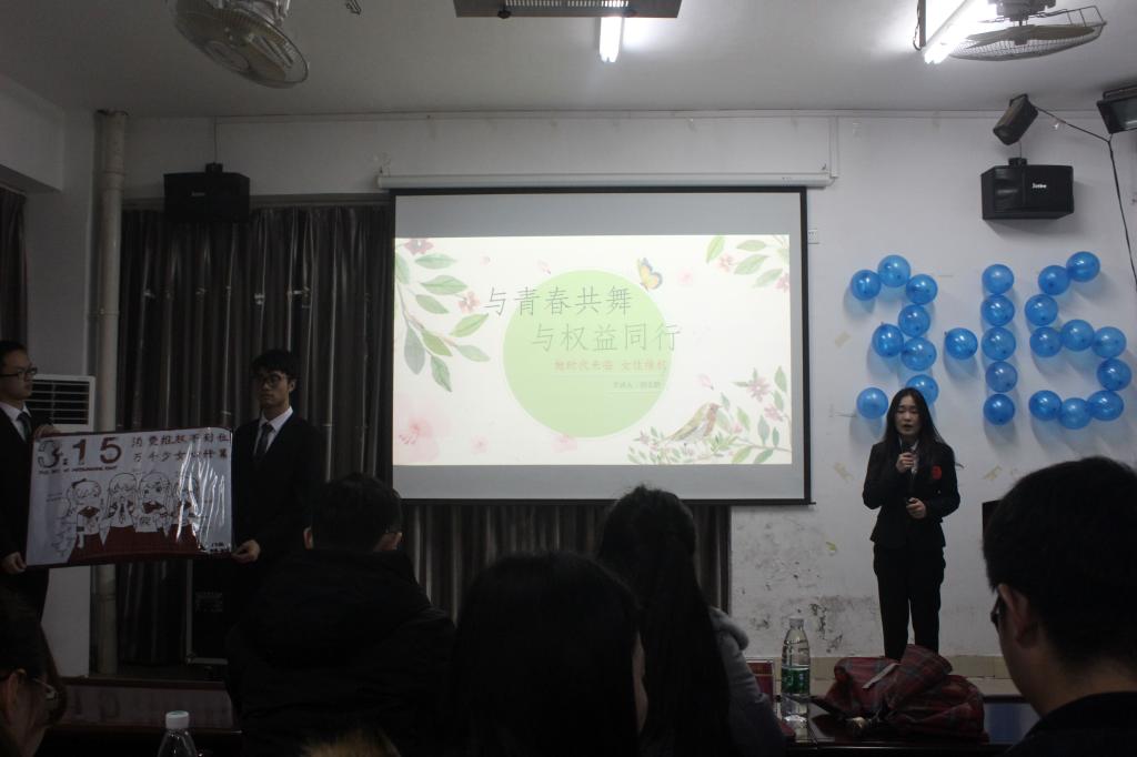 主持人宣布活动开始后,学生科张毅韬老师发言。他询问同学们是否关注了最近很火的维权事件,并鼓励同学们积极关注与自身权益息息相关的新闻话题,提高自己的维权意识。