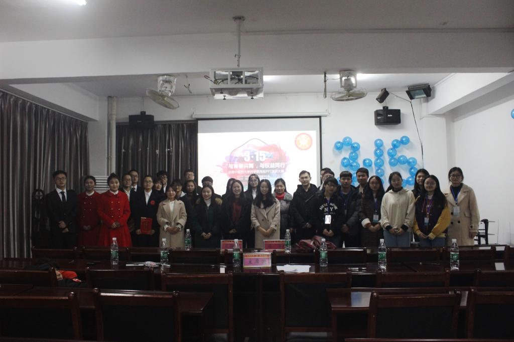 接着来自药学院各班、经过层层筛选的八位选手依次上台展示自己制作的海报,并以PPT演讲的形式讲述自己制作海报的构思。选手们构思奇特,想法新颖,以绝佳的口才和想象力博得了观众们的阵阵掌声,现场气氛热烈。在“有奖问答”环节,主持人提问了一些关于3.15国际消费者权益日的问题,同学们发言踊跃。