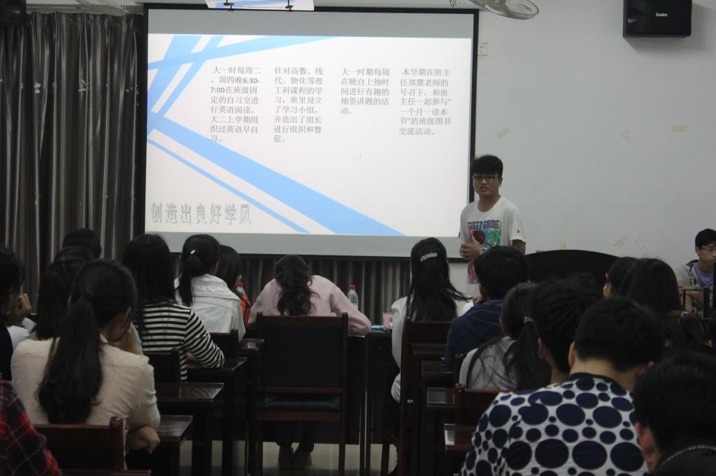 主持人宣布评选大会正式开始,七支不同的队伍分别就历年来本班在思想建设、组织建设、学风建设以及班级和团支部特色活动建设展开详尽的介绍。各班团支部代表,围绕“收获与成长、爱与感动”等一些主题展开论述,对本班近一年半来开展的活动以及班级同学所取得的成就进行了回顾与总结,他们精彩的讲述深深吸引了在场的观众,将评选大会现场的气氛推到高潮。