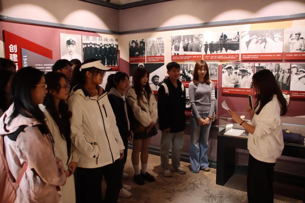 继而步入纪念馆内,在馆内大厅,同伴学长何湘蓉同学化身讲解员,以饱满的热情与详实的讲述,为大家徐徐展开肖劲光将军那波澜壮阔的一生画卷。从早年毅然投身革命,历经土地革命战争的烽火、抗日战争的硝烟、解放战争的洗礼,到新中国成立后倾尽全力于海军建设事业,肖劲光将军的每一段历程都扣人心弦。大家全神贯注地聆听,沉浸于那一段段动人心魄的历史之中,深切领会到革命先辈在艰难险阻中始终坚守信仰、百折不挠奋勇前行的伟大奋斗精神。