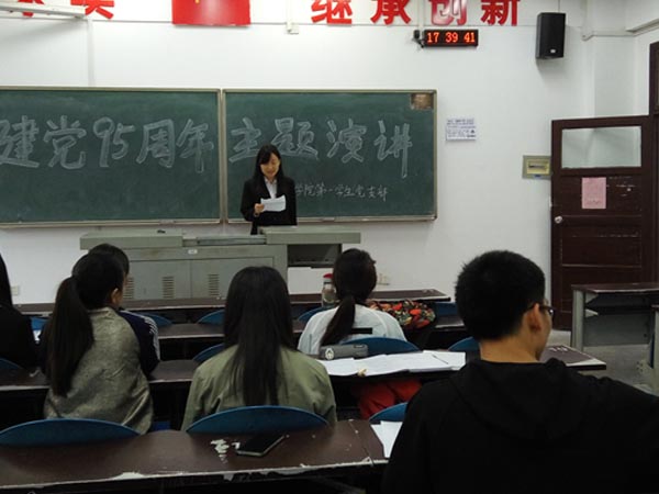 为保证活动接地气并让更多的同学得到锻炼,党日活动分为7个党小组采取多种形式进行。第一党小组举行了党章党史知识竞赛,在竞赛的过程中回顾党章党史。第二党小组举行了庆祝建党95周年主题演讲活动,同学们的演讲颇具创意,并与生活息息相关。第三党小组举办了“党团引领成长,红色点亮青春”德育答辩,加强同学们对党和国家的认识。第四党小组举办了“忆革命先烈,抒爱国情怀”诗歌朗诵会,增强了党员的先锋模范意识。第五党小组通过“两学一做”朗读活动,进一步学习了“学党章党规、学系列讲话,做合格党员”的精神。第六党小组举行了学雷锋志愿活动,充分发挥基层党组织的战斗堡垒作用。第七党小组开展优秀党员事迹报告会,引导同学们学习先进典型,增强同学们的责任意识。