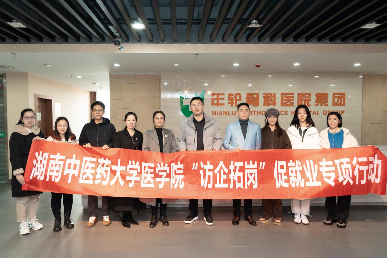 为深入学习贯彻党的二十大精神,认真落实党中央、国务院“稳就业”、“保就业”决策部署和学校访企拓岗促就业专项行动安排,推进我院学生更充分更高质量就业,12月27日,医学院赴长沙星沙年轮骨科医院开展访企拓岗专项行动,并召开合作交流座谈会。此次专项行动由我院院长庹勤慧带队,医学院党委副书记李玉冰、医学院学生科辅导员田喻、吕俊苇陪同参加。