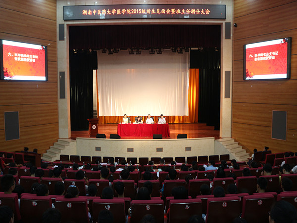 大会由党总支王健副书记主持。在庄严的国歌过后,医学院院长邓常清教授致大会开幕词。在致辞中介绍了学院的基本状况,并强调了班主任制度的重要性,希望班主任能在今后工作中与同学们共同进退,为学院的发展贡献出一份力量。随后医学院副院长庹勤惠教授宣布新任班主任名单并颁发聘书,医学院班主任代表唐群老师与大家详细的分享了工作经验,2015级新生代表也随之发表对大学生活的展望。最后医学院党总支书记张秋雁教授对全体新生提出四点希望:一是顺利的完成新生活的转变;二是注意个人的德行修养;三是勤奋学习,精益求精;四是维护学院的优良形象。