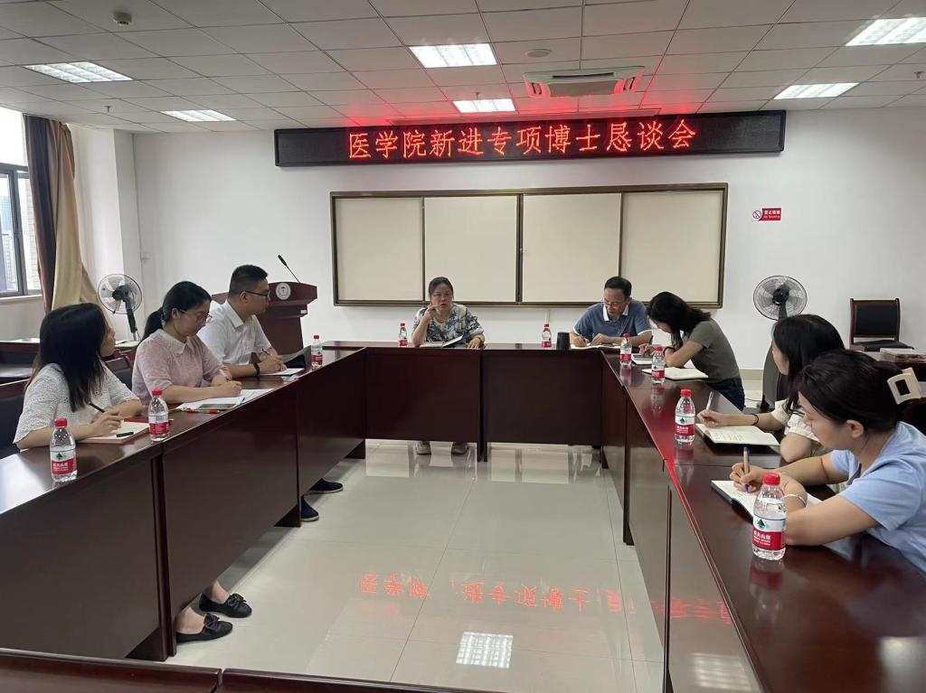 为进一步发挥高层次教师队伍的先锋示范作用、助力学院发展,8月29日上午,医学院特召开了青年博士科研恳谈会,院长庹勤慧、副院长雷晓明出席会议,科研实验室刘洋老师及2022年新进的4位青年博士参加此次会议。