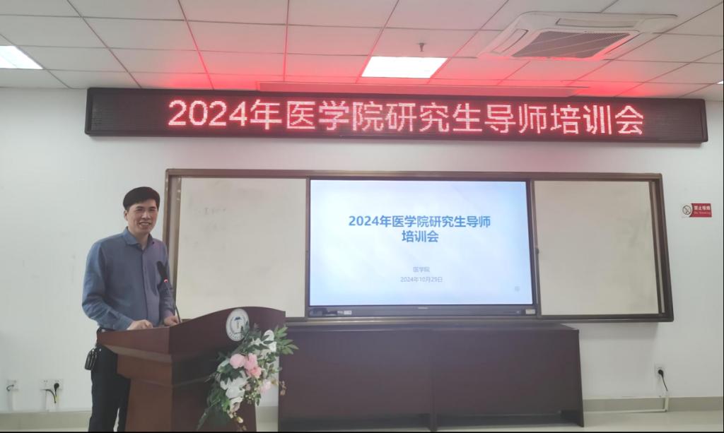 10月29日下午,为深入贯彻党的教育方针,全面落实导师立德树人职责,进一步加强导师队伍建设,医学院在济世楼1306会议室举行了研究生导师培训会,会议由唐群副院长主持。医学院全体在岗博士、硕士研究生导师参会。