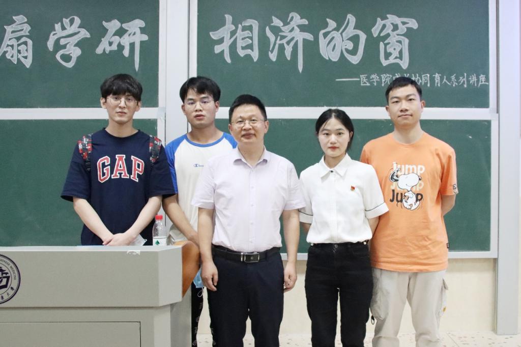 5月31日晚7时,医学院“明德·启智·筑梦”成长协同育人系列讲座,在半岛手机版官网登录 含浦校区3315教室开讲,主题为“开一扇学研相济的窗”,由医学院生理学教研室副主任、副教授唐标及其学研小组成员周宵、梁海、刘珑、蒋伟担任主讲人。讲座由医学院党委副书记任婷主持。医学院团委书记李帆影,学生管理科副科长廖海燕,辅导员罗太石、刘娅薇、钟小康、田喻、闵文洁,医学院19级、20级、21级各班部分学生参加讲座。
