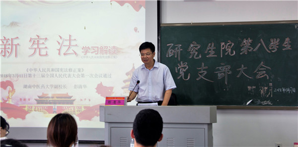 5月17日,副校长彭清华联系的研究生院第八学生党支部在含浦校区研究生6楼教室开展了党课学习活动,党课的主要内容是学习习近平新时代中国特色社会主义思想的理论,加强党员理论学习和修养。彭清华作《宪法》修正案学习解读,研究生院学生科全体老师、第八学生党支部全体党员、预备党员及发展对象参加了学习。