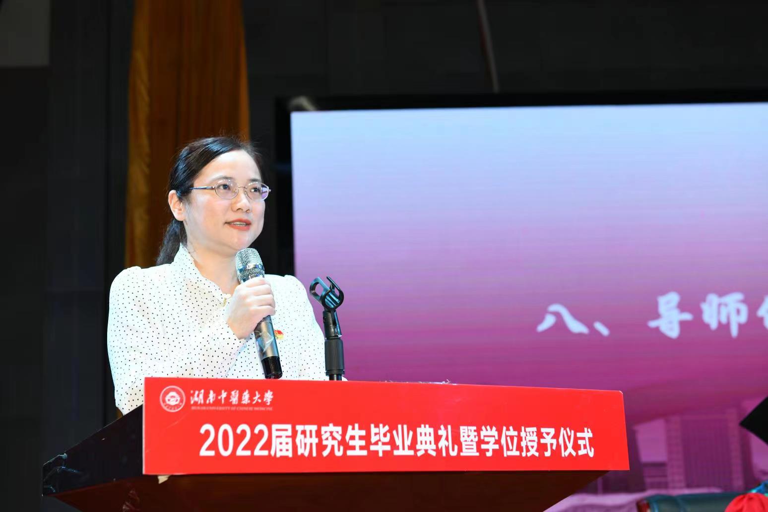 导师代表覃丽表示,希望毕业生们志存高远,做到传承精华,守正创新,朝着既定目标继续前行,以梦为马,不负青春,不负韶华。
