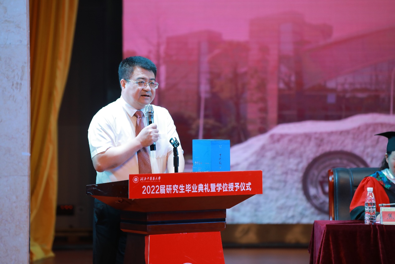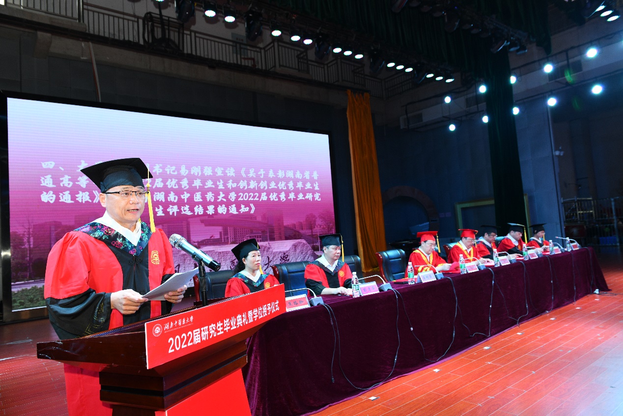 易刚强宣读了《关于表彰湖南省普通高等学校2022届优秀毕业生和创新创业优秀毕业生的通报》《关于半岛手机版官网登录