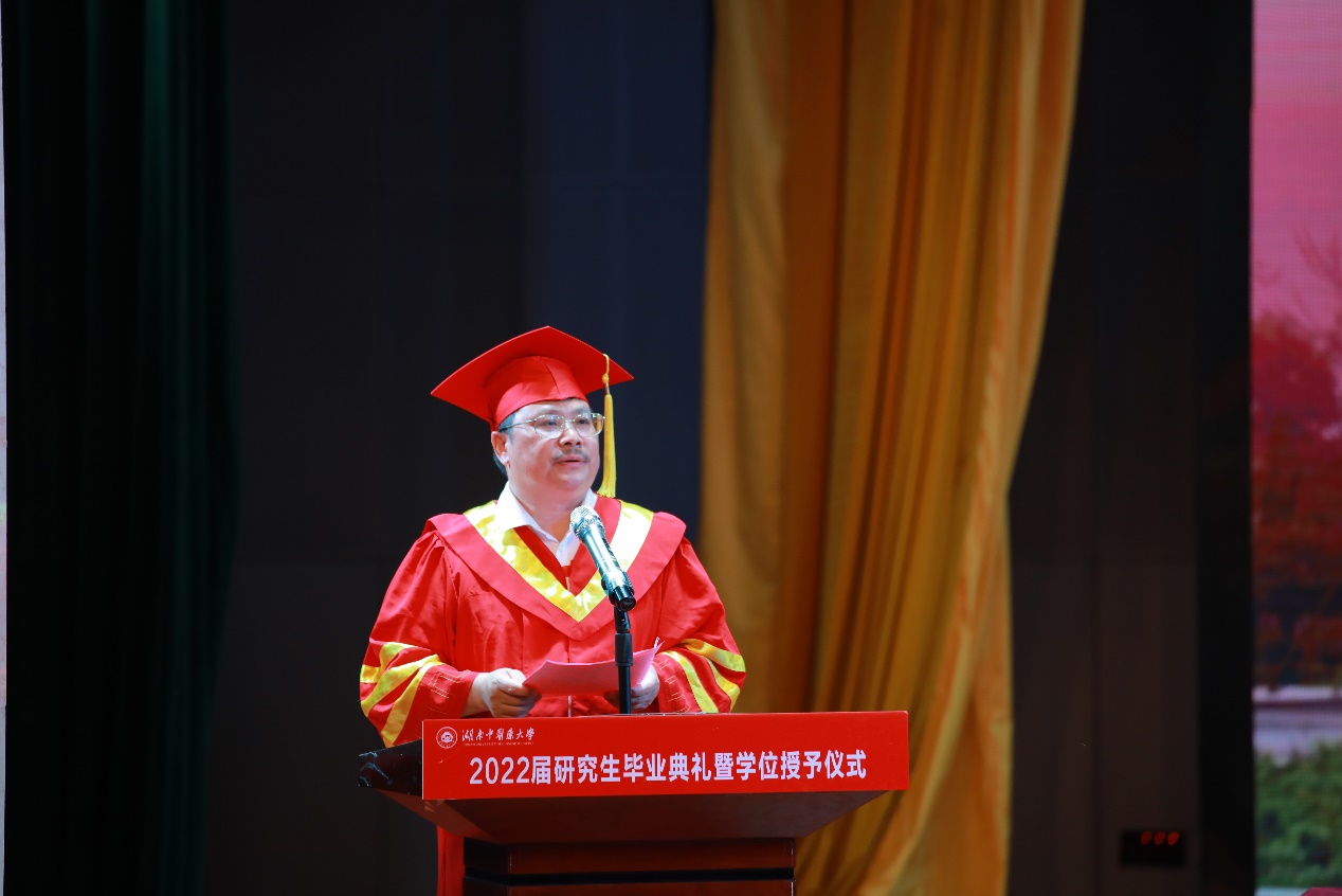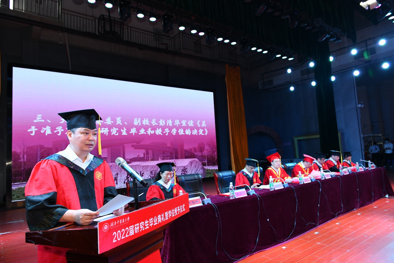 典礼在雄壮的国歌声中拉开帷幕。彭清华副校长宣读了《关于准予2022届研究生毕业和授予学位的决定》。