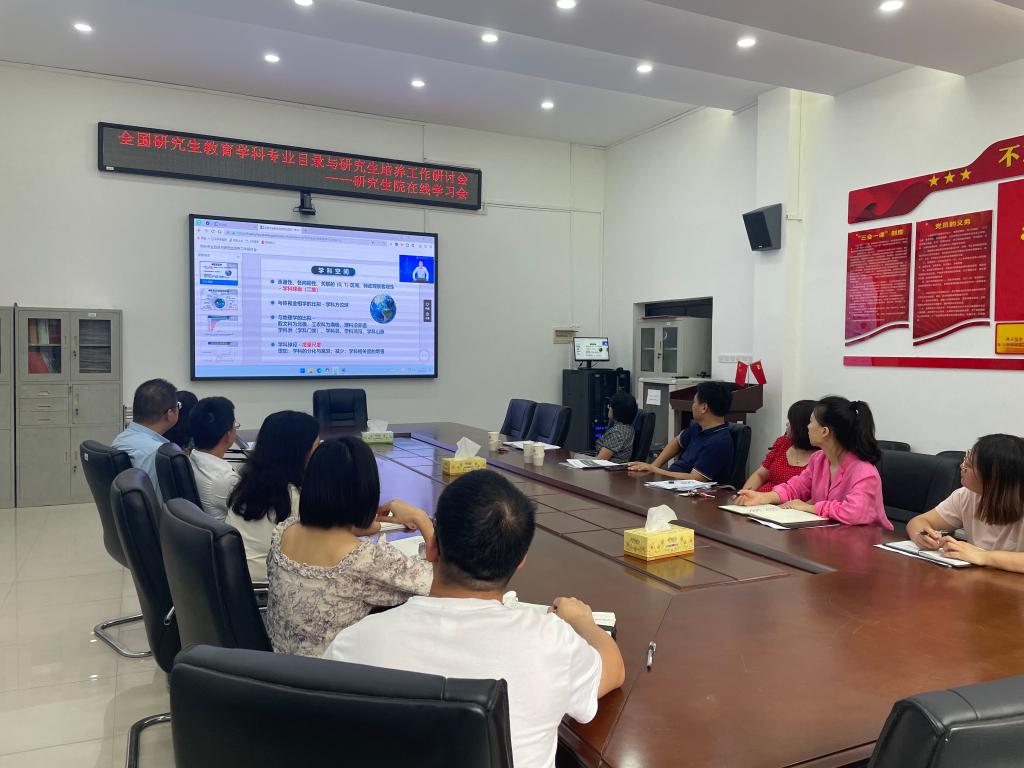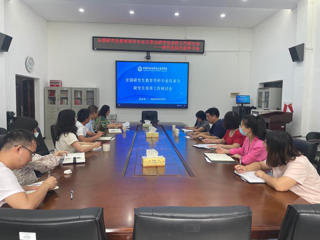 9月28日,由中国学位与研究生教育学会主办的全国研究生教育学科专业目录与研究生培养工作研讨会顺利召开。会议采用线上直播方式进行。我校副校长彭清华、研究生院全体职工在研究生院二楼会议室参加会议。