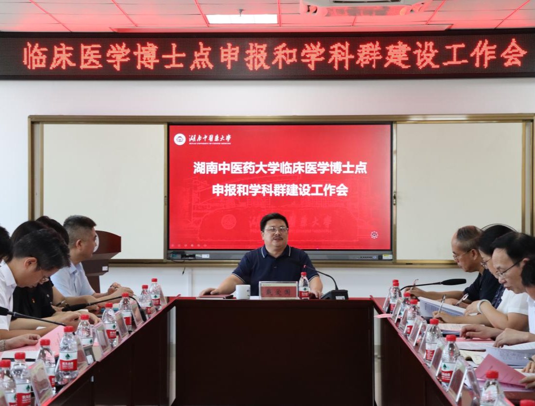9月7日上午,我校临床医学博士点申报和学科群建设推进会在医学院会议室召开。校党委书记、临床医学学科群带头人及博士点申报负责人戴爱国主持会议。戴爱国在动员讲话中强调,我校正在向着建设行业一流、国际知名、中医药特色鲜明的高水平教学研究型大学而努力奋斗,中医和西医齐头并进发展至关重要,临床医学在医学中有着举足轻重的地位,启动临床医学一级学科博士学位授权点申报和临床医学优势特色学科群建设工作正当其时,意义重大。