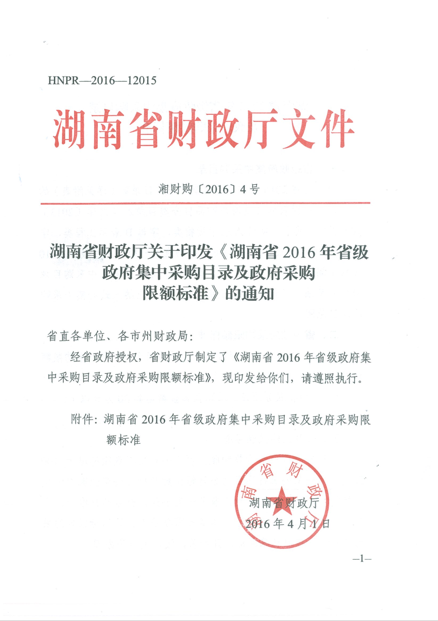 湖南省2016年省级政府集中采购目录