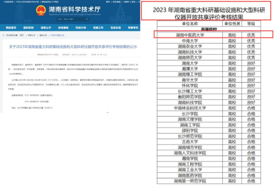 近日,湖南省科学技术厅发布了《关于2023年湖南省重大科研基础设施和大型科研仪器开放共享评价考核结果的公示》,我校在此次评价考核中排名第一,获评“优秀”等级。自2019年至今,我校已连续5年获评为湖南省高校大型科研仪器开放共享评价考核“优秀”单位。