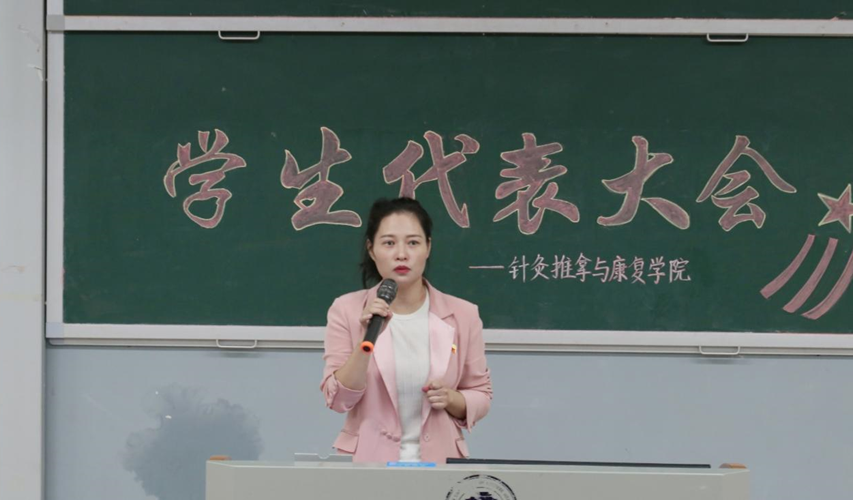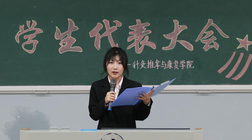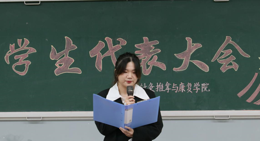第十七届学生会执行主席鲁家雯作《针灸推拿与康复学院第十七届学生会工作报告》。