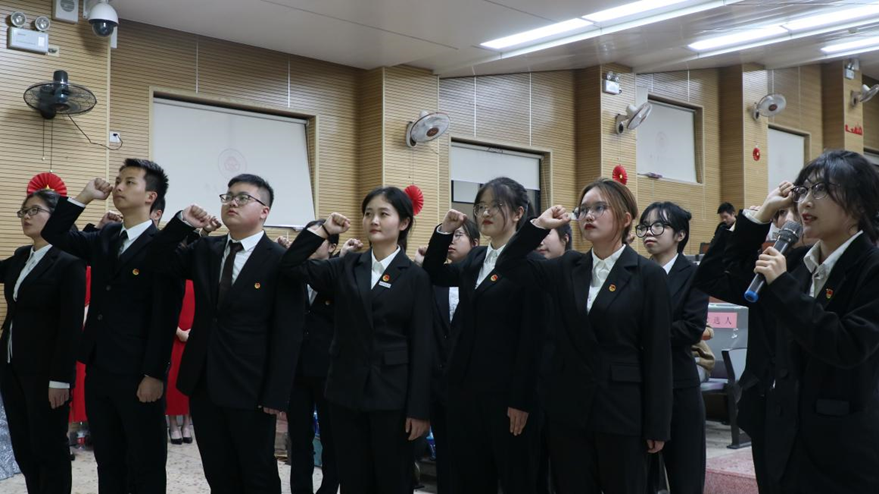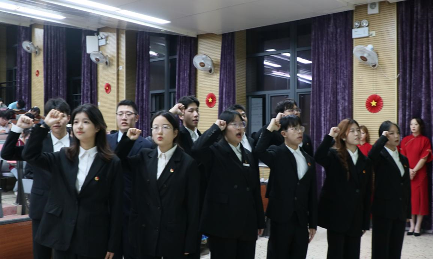 分团委学生会执行主席鲁家雯带领新一届分团委学生会、易班成员宣誓。
