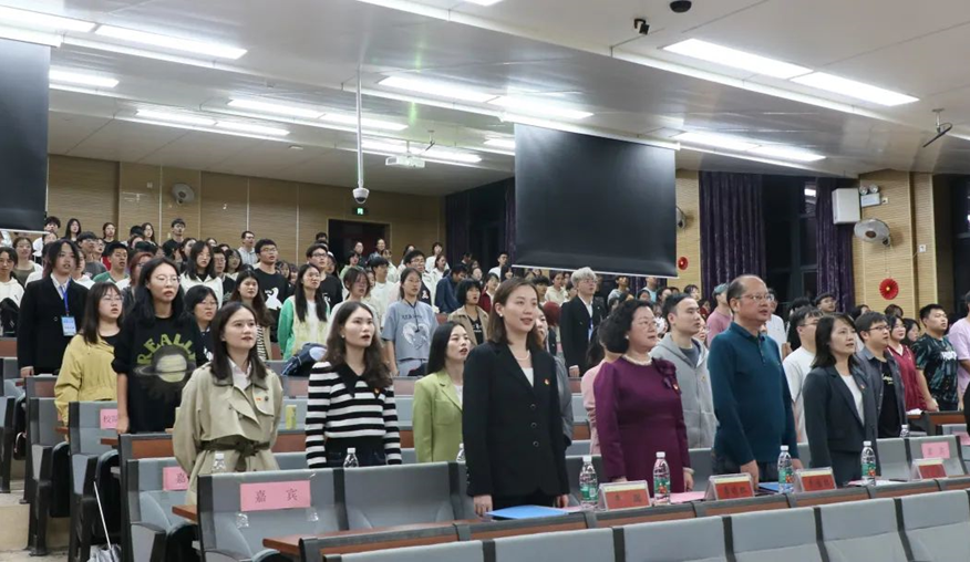 大会伊始,全体起立,齐唱国歌、校歌。