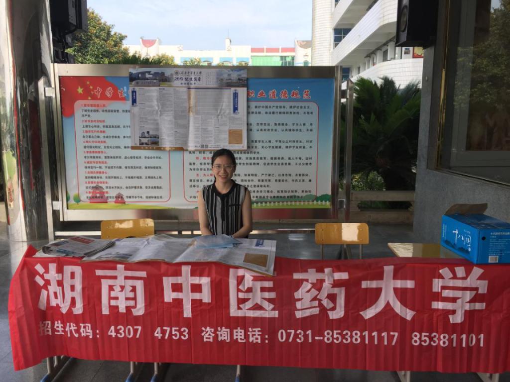 2019年6月25日上午,针灸推拿学院唐雨兰老师去浏阳田家炳中学开展招生宣传工作,生源是学校赖以生存的首要条件,吸引优质生源则是学校打造教育品牌的重要保障。为进一步贯彻、落实学校今年的招生宣传工作要求,我们参与了学校的招生宣传工作。