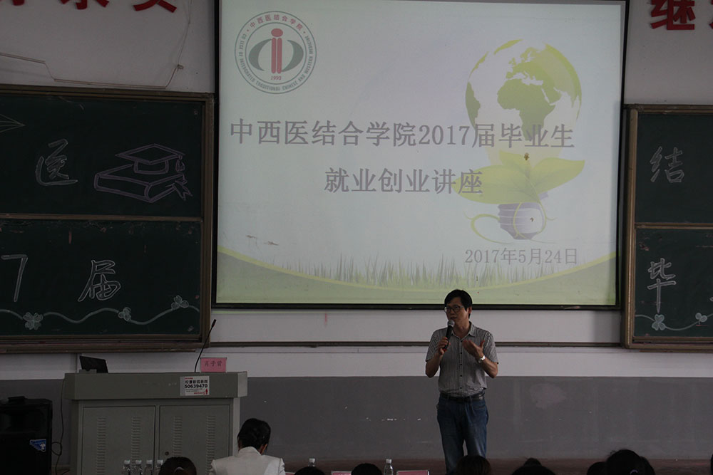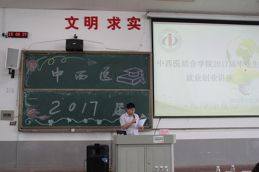 2017年5月24日下午2:30,半岛手机版官网登录 中西医结合学院2017届毕业生大会在我校含浦校区1506教室隆重举行。出席本次活动的嘉宾有中西医结合学院党委书记肖子曾教授、中西医结合学院党委副书记杨彤老师、中西医结合学院2012级年级主任肖玉洁老师、中西医结合学院学生管理科副科长易卿老师,我院2017届全体毕业生也参加了本次活动。