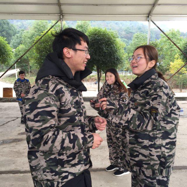 上午七点半出发,到达基地后,在教练的要求下,大家换上了迷彩服,仿佛回到了军训的场景。教练简单的口号训练后,大家调整了精神状态,开始了为期一天的活动。