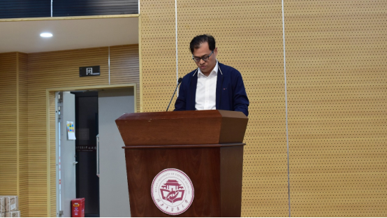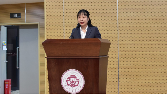 肖玉洁老师作为新生班主任发言,她指出大学与高中的不同,并就新生如何过好大学生活进行阐述,希望同学们终身学习,不忘初心,牢记使命,发扬湖中大“文明、求实、继承、创新”的精神。