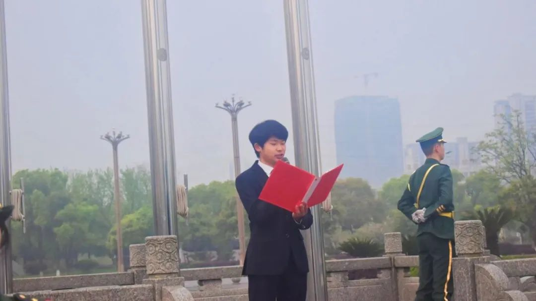 学生代表张颢熠在国旗下发言。他呼吁作为新时代的中国青年,要牢记习近平总书记的教诲和要求,做有理想、敢担当、能吃苦、肯奋斗的好青年,如此才能慰告先烈,不负党和人民的期望。