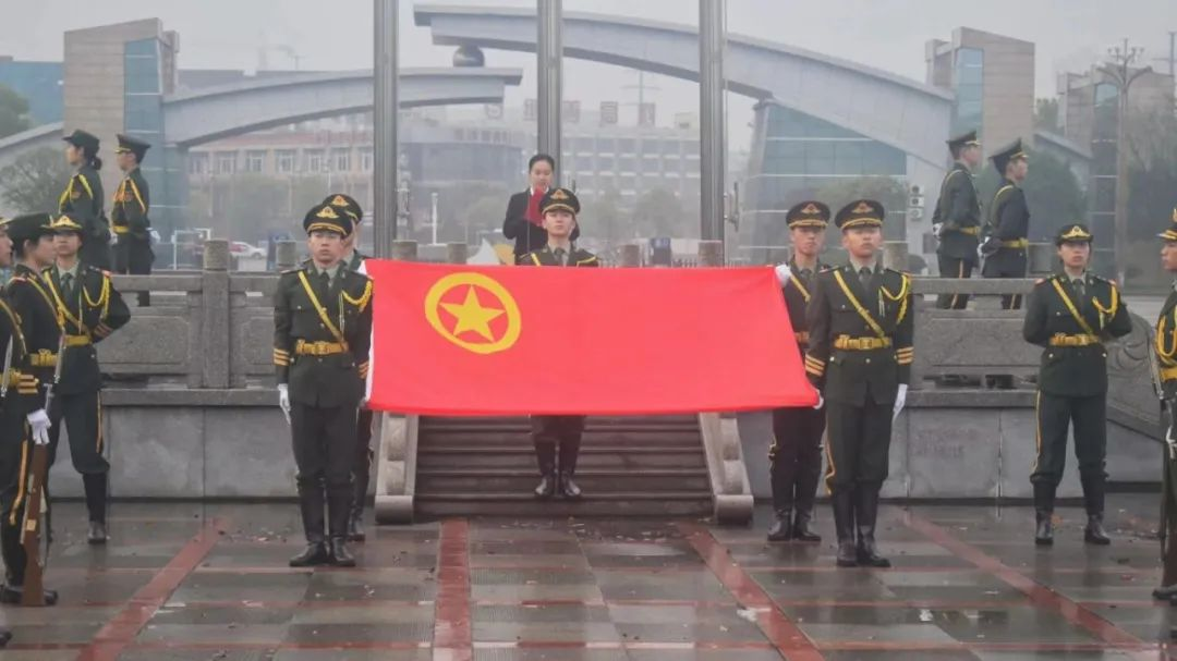 清晨7时,主持人宣布升旗仪式正式开始,国旗护卫队队员精神抖擞,步伐整齐地护送国旗入场。伴着雄壮激昂的国歌旋律,鲜艳的五星红旗冉冉升起,全体师生庄严肃穆,奏唱国歌,并向国旗行注目礼,在悠扬的校歌中,校旗缓缓升起。