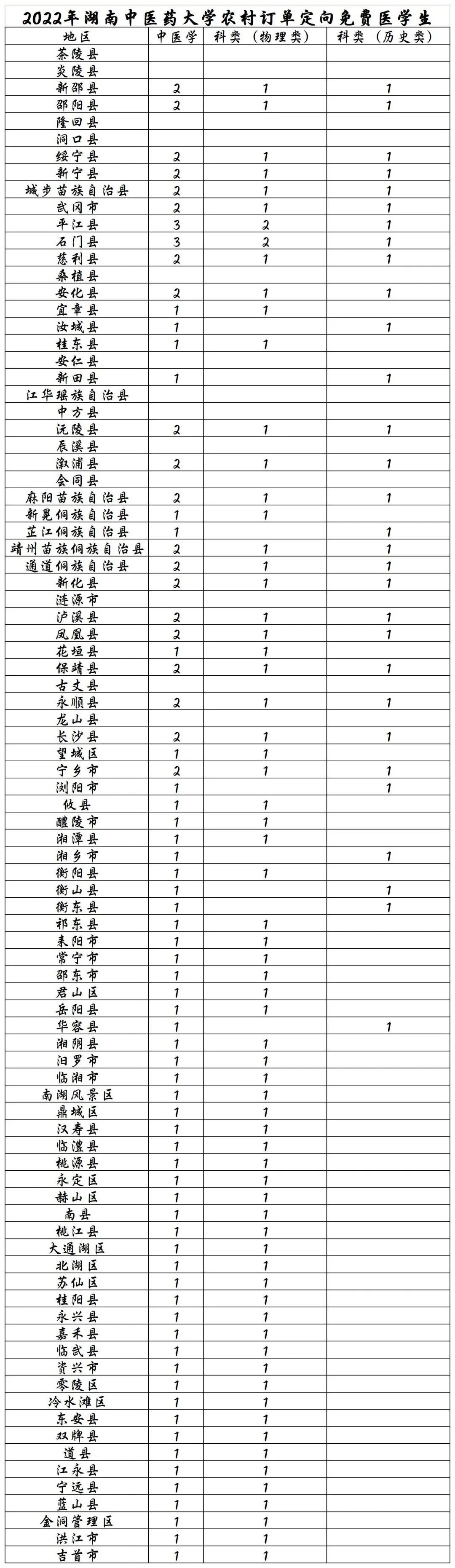近日,湖南省卫生健康委、湖南省教育厅、湖南省人力资源社会保障厅、湖南省中医药局联合发布《关于做好湖南省2022年农村订单定向免费本科医学生招生培养工作的通知》,我校2022年农村订单定向免费本科医学生(以下简称定向医学生)招生计划为100人。