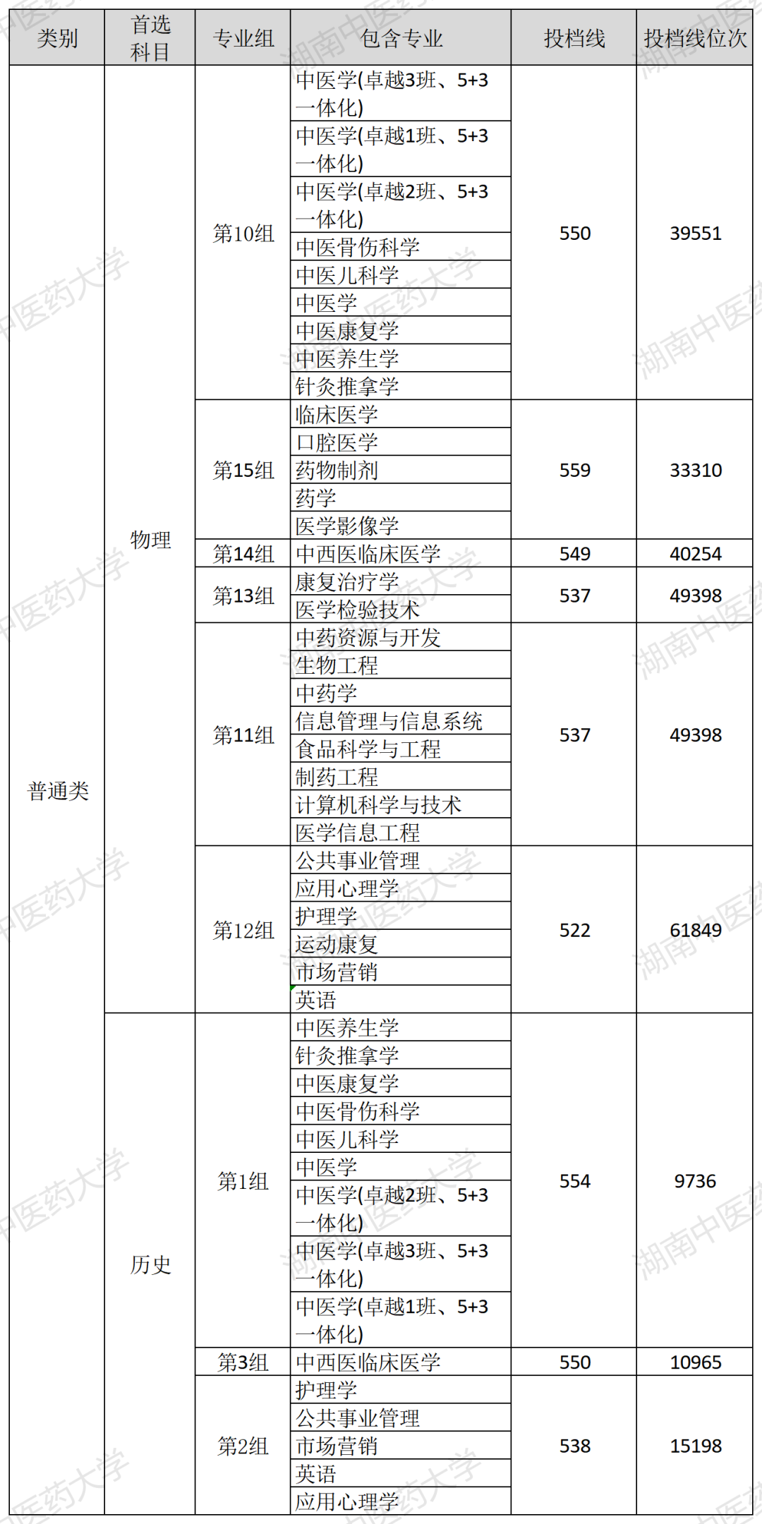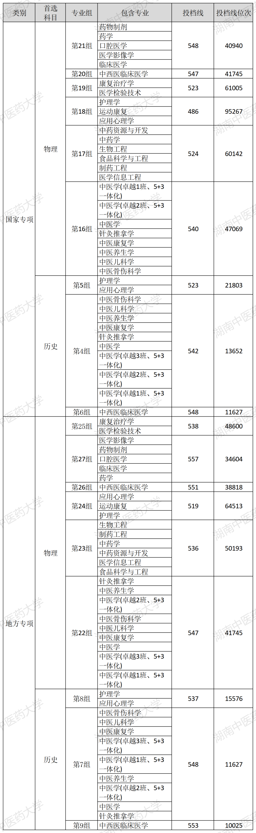 2021年湖南省本科批次投档线(普通类)