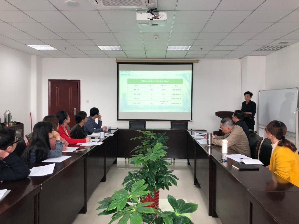 我院13级毕业生辅导老师兼就业专干王彬彬重点介绍了2018届毕业生就业工作的总体思路、目标及遇到的困难。2018年,学院共有毕业生199名,截止到2018年4月15日,确认录取研究生学生人数68人,达到毕业生人数比例的34.17%,学院组织学生参加供需见面会两场,组织参加专场招聘会八场,收到学生就业协议18份。他强调希望全院领导、老师们共同做好毕业生就业指导与服务工作,积极为毕业生搭建就业平台,多途径地为毕业生就业工作出谋划策。接着,各毕业班班主任就本班就业工作中主要做法和存在的问题进行了交流和经验分享,并对学院的就业工作提出了很多建设性意见和建议。