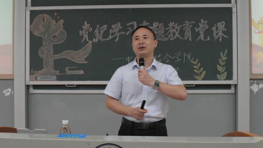 张国民书记结合中国共产党发展历程,深入阐述了中国共产党的纪律严明,阐明了青年师生应如何更好地认识党纪这一问题,并通过案例分析综合介绍了何为纪律性、为何需要纪律及纪律底线的不可触碰性,向中西医结合学院师生党员、入党积极分子分享了自己关于《中国共产党纪律处分条例》的学习收获。