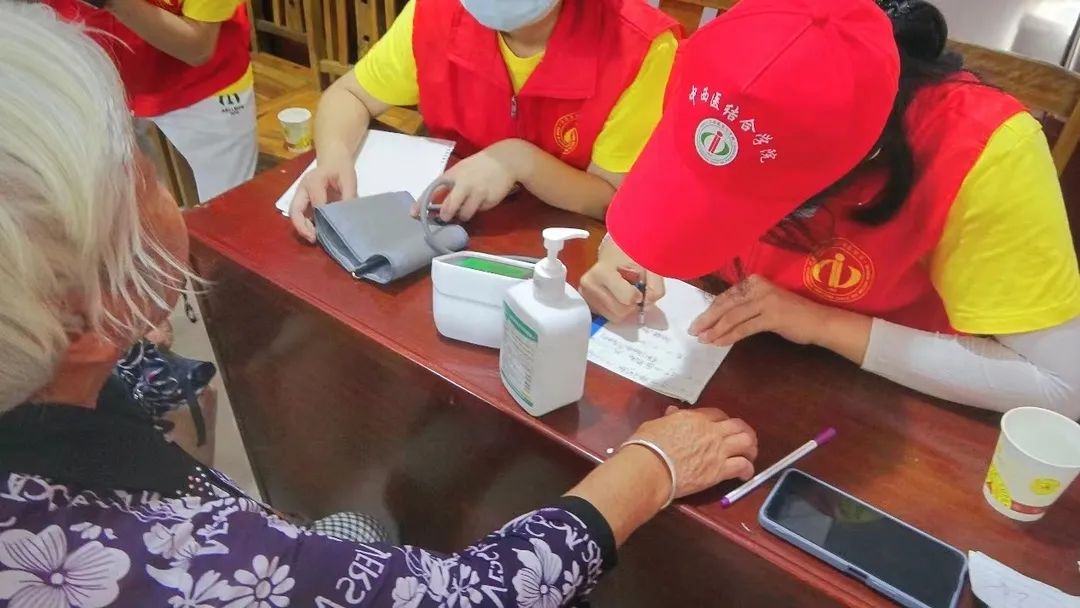义诊现场启动仪式后开展了义诊活动,专家教授现场为田江村村民把脉问诊。学生们也充分结合中西医专业知识为当地居民提供血压测量、诊疗、推拿、艾灸等多项基础医疗服务。向广大人民群众宣传健康生活饮食方法,推广传统保健运动,促进居民身体健康,提高免疫力。现场还向村民免费发放由益丰大药房赞助的医药物资礼包。