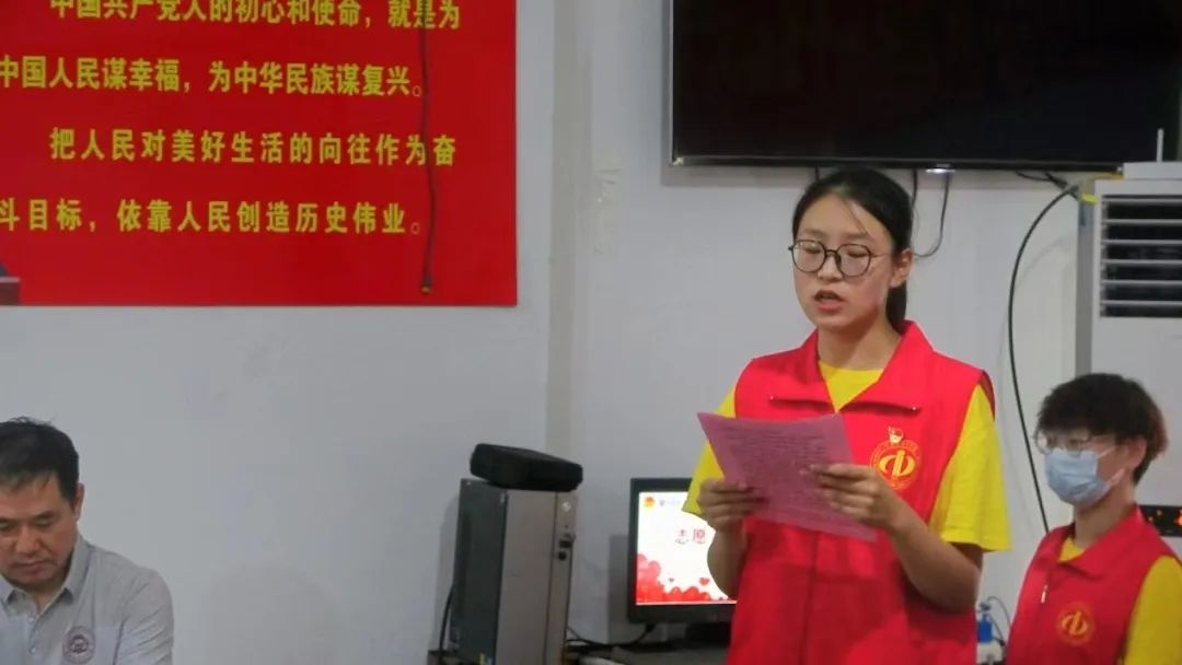 志愿者代表曾倩如发言,曾倩如说到“三下乡”社会实践活动正是当代青年大学生运用知识、施展才华、磨练意志、实践成才的大课堂。中西医结合学院青年将积极投入社会实践活动中,继承光荣传统、不负众望,在服务社会和人民的活动中,书写新篇章!