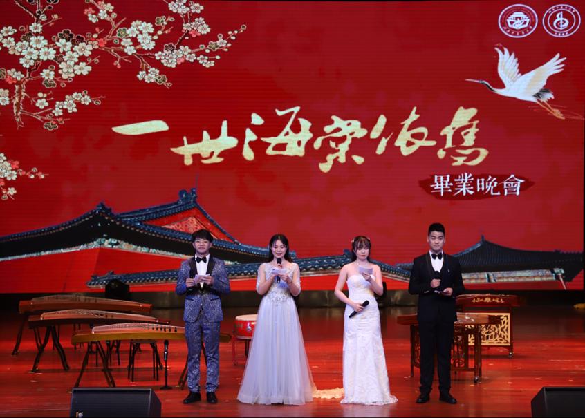 晚18点50分,毕业晚会“一世海棠依旧”正式开始,主持人的饱满激情与表演者们的精彩演绎皆表达着对学长学姐们的祝福。优雅的民乐演奏《千秋岁》,让青春的勃发在弦音的律动下令人久久沉醉,不愿梦醒。激情的朗诵《前行》,懂得追梦的路上唯有不断前行才能到达理想的彼岸。热情奔放的爵士舞《风月》,青春活力四射,团委书记苏醒老师与学生科姚绚老师的加入,为舞蹈更添亮点。精彩绝伦的《纸短情长》和古典舞《灼灼芳华》,道不尽对母校与青春的眷恋。别具一格的配音秀《爱你三千遍》,表现出鲜活的艺术形象。最后的大合唱《不说再见》令人不禁潸然泪下,感慨颇丰。毕业晚会在这浓厚的不舍氛围下落下帷幕。到此,本次2019级毕业生毕业典礼暨毕业晚会圆满结束。