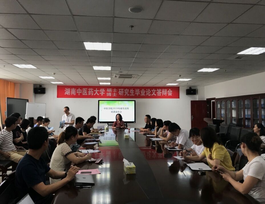 6月24日上午10:00,我院在学院会议室召开2019年招生宣传培训动员会,中医学院党委副书记李晓红参会,中医学院学生管理科副科长成宇骅主持会议,所有参与招生宣传的18名老师及19名研究生参加了会议,成宇骅重点讲解了招生宣传咨询要点,并提醒所有外出老师和研究生报销的注意事项,李晓红书记在会议最后作了动员发言,希望各位老师能够克服困难,积极完成招生宣传工作。