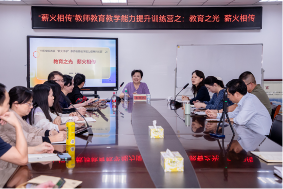 10月17日下午,中医学院首届“薪火传承”教师教育教学能力提升训练营”之—教育之光,薪火相传研讨会在中医学院会议室召开,会议特邀袁振仪教授为教师教育教学能力提升“传经送宝”。