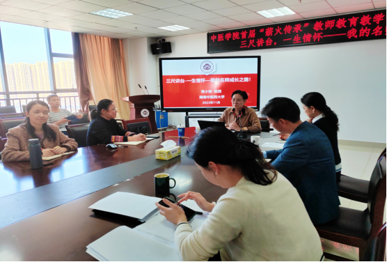 11月07日下午,中医学院首届“薪火传承”教师教育教学能力提升训练营之:三尺讲台,一生情怀——我的名师成长之路 研讨会在中医学院会议室召开,会议特邀常小荣教授为教师教育教学能力提升“传经送宝”。