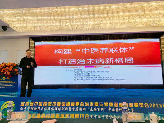 湖南医药学院校长何清湖教授作了题为《构建“中医养联体”,打造治未病新格局》的报告,从“养联体”提出的背景及原因,“养联体”的构建思考及结合中医治未病与健康管理从学术化、产业化、生活化、智能化、网络化五化落地提出建设性思维。中华中医药学会科学普及部郭继华研究员《以科普标准助力治未病学科高质量发展》为题,总结了中医药科学普及与科技发展的协同重要性,就中医药科普标准知识库平台建设、名医名家科普工作室及科普基地的推广和融合多媒体的宣传,以提高广大受众对自我健康的认知做主旨发言。广东省中医院谢长才教授报告主题《中医体重管理临床指南与共识解读》,就相关标准的起草背景,中医体重管理的分类及诊断标准制定详细解读。孙贵香主任委员以《中医+思维引领的中医体重管理模式构建与临床实践》为题,就传承“中医+”思维、构建中医体重管理模式的创新举措作主旨报告。