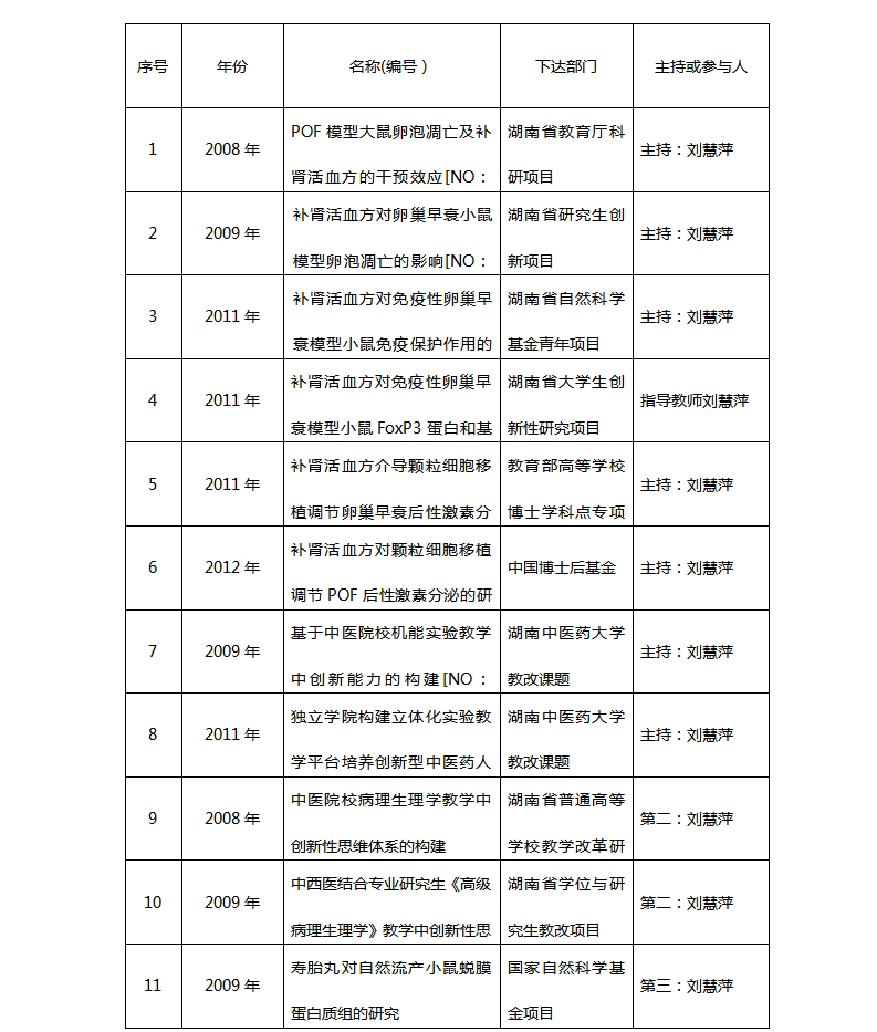 2006-2013年仲景学说教研室科研项目目录