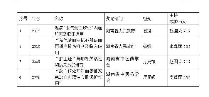 2006-2013年温病学教研室科研成果奖励