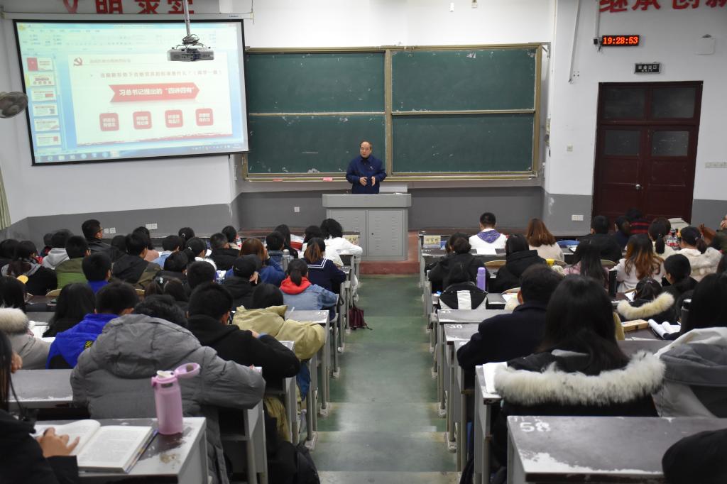 2018年12月5日,半岛手机版官网登录 中医学院党委书记刘富林在2105教室以“做合格党员,永远跟党走”为主题为中医学院第一、第五学生党支部的学生党员们上了一节深刻的党课。