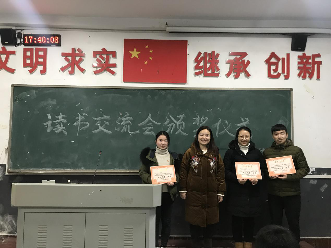 经过全体党员同志的投票,第四学生党支部的颜嘉丽同志、姜苗同志、陈柏辉同志得分名列前三,荣获“阅读之星”称号。颁奖仪式于2018年12月13日在东塘校区21教室举行,姚绚书记为获奖同志颁奖。