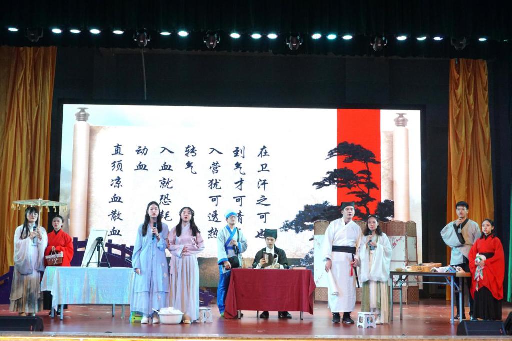 比赛过程中,各小队为我们带来了精彩纷呈的表演。一叶报秋队运用优美的古筝韵律作为背景音乐,使整个故事节奏低缓深沉;战役小队展示了吴又可不朽的功绩,将故事中的人物刻画得栩栩如生,整个表演感人至深;茯神队表演者端庄典雅,将叶天士的形象刻画得绘声绘色,表演最后的扇子舞,令人回味无穷。